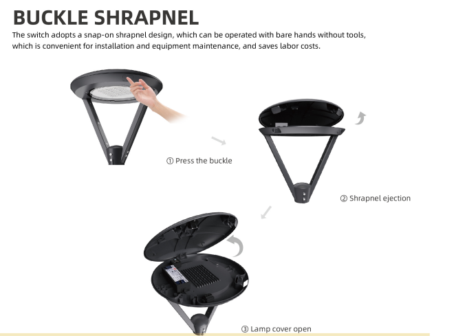 Connection opening and closing design, the lamp cover can be opened, closed with a large a large angle,